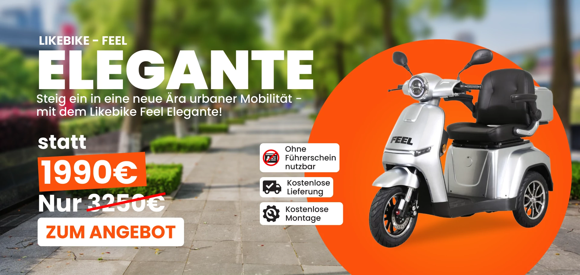 LIKEBIKE-ELEGANTE – Elektrischer dreirädriger Roller 25 km/h mit Graphen-Akku 60V 23Ah rot